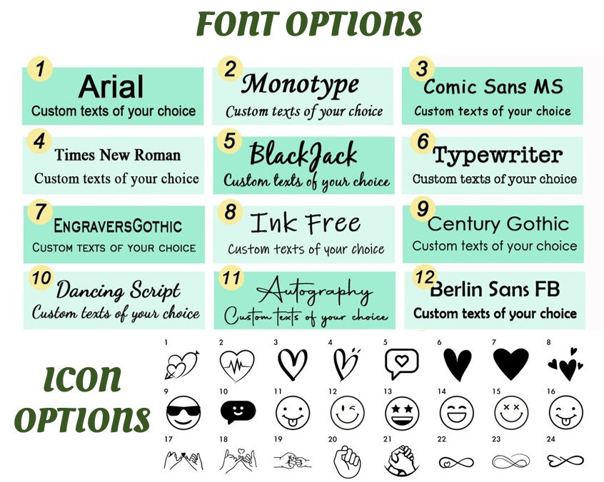• Perfect for showcasing custom text and icons.